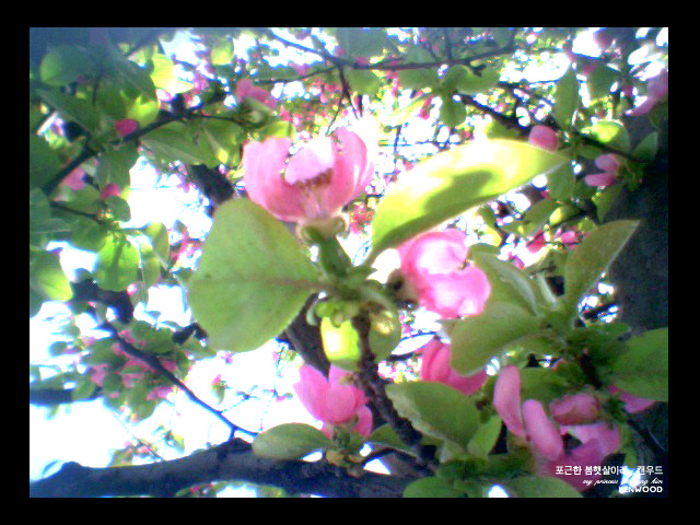 점심식사후,,,회사마당에 핀,,,따사로운 햇살 머금은 모과꽃,,,폰카!!