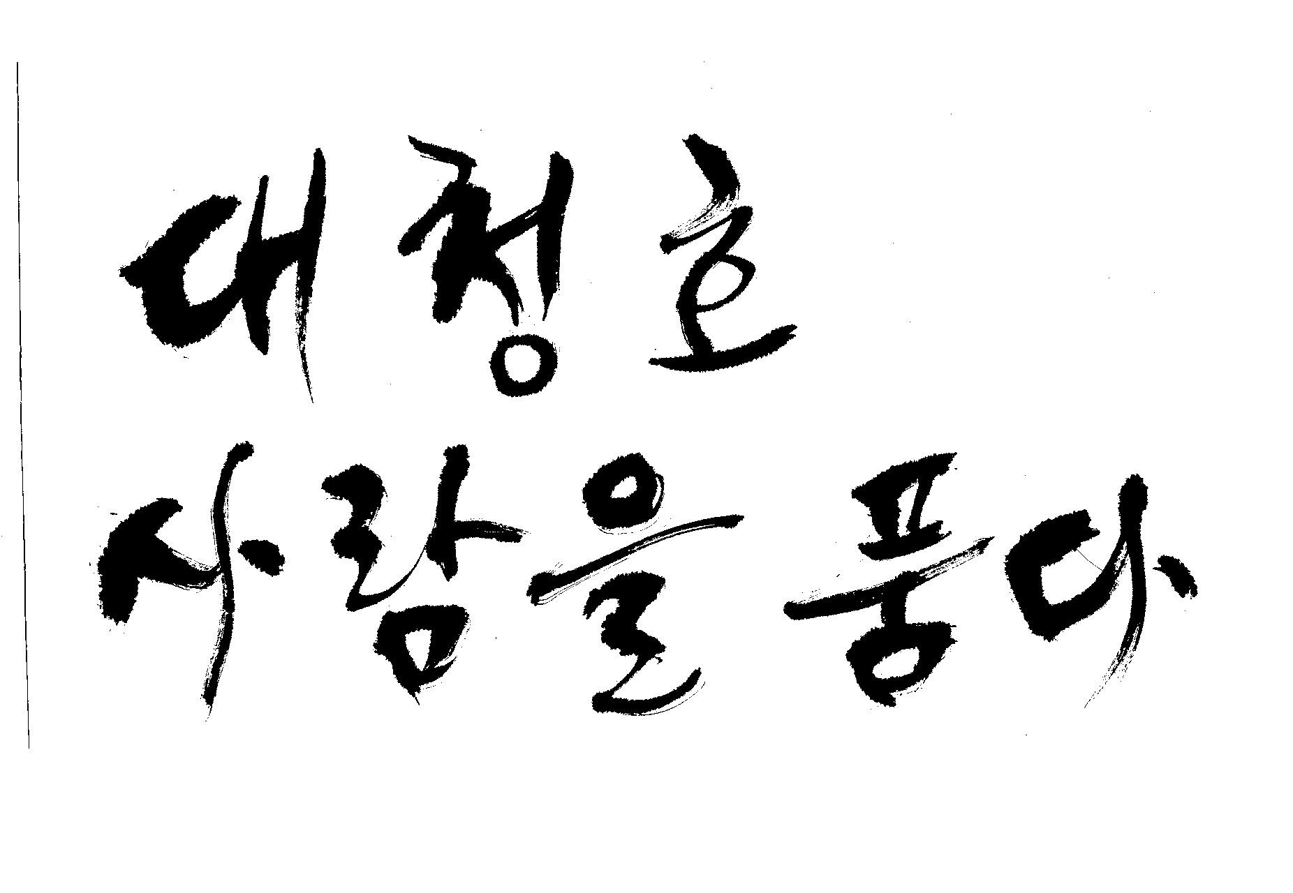 캘리 부탁드려요 김철호 일반 0 6149 2009.06.03 12:12 > > > > > 대청호 > > 사람을 품다 > > > > - 방송용 다큐멘터리에 들어갈겁니다 > > 죄송합니다만 빨리 부탁드려요 > > 두줄로 가운데 맞춤으로 써주세요 - > > > > 줄맞춤은 알아서... >