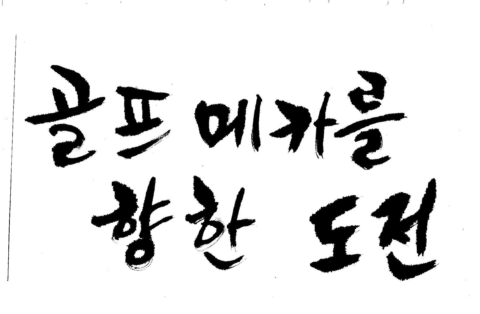 우경의 행복한 캘리세상-골프메카 김철호 일반 0 7957 2009.07.18 10:28 > > > > > > > > > 리듬감을 최대한 살리고 ㅡ 스포츠의 운동감과 밝음 > > > 기교섞인 획을 배제--일반적인 느낌 > > > 굵기변화를 통하여 도전 낱말을 강조 > > > 스타일은 비슷하지만 ...한 사람이 썼으니까 ㅎㅎㅎ > > > 서로 다른 글꼴을 올린 것은... 비교하여 보시고... > > > 편집자에게 선택권을 주는 것입니다 > > > > > >