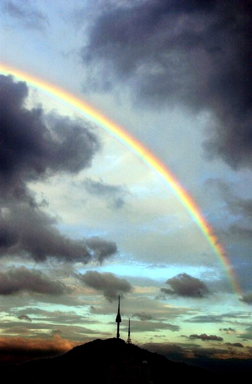본 사람에 말에 의하면 무지개가 굉장히 높이 떳다구 하더군요..구름사이에 있었다구...^^;