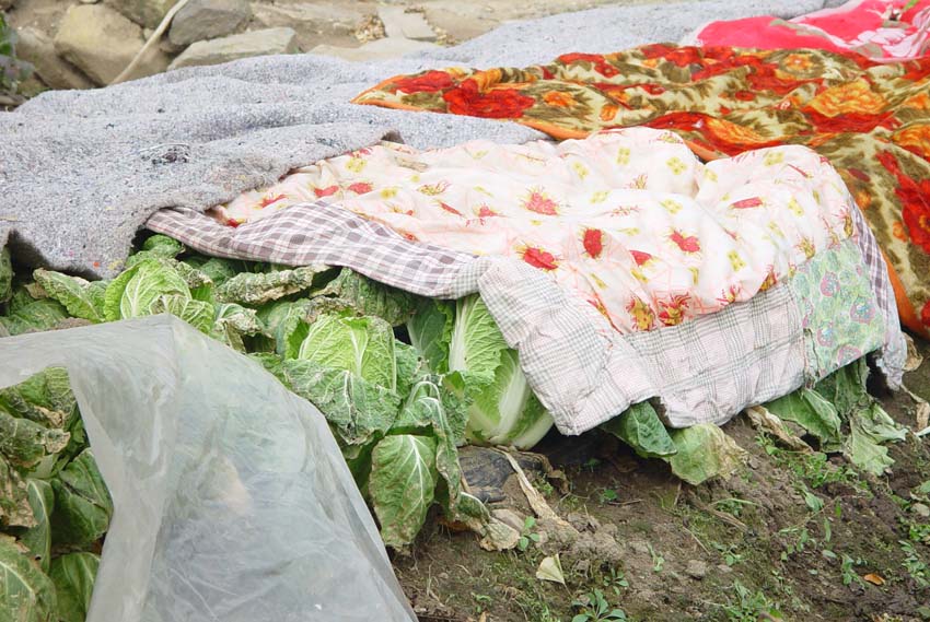 날씨가 마니 추워졌군여...김장할 배추가 얼까봐 이불을 덮어씌어 줬드군여...^^