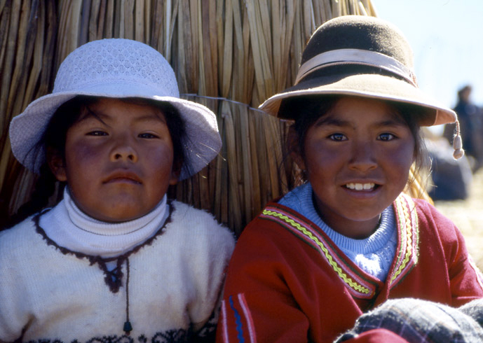 페루의 띠띠까까 호수에사는 이 아이들은 갈대로 만든 섬에서 생활합니다.