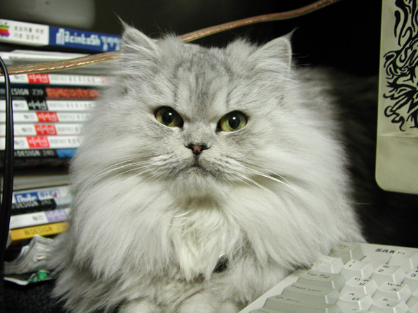◈ 민이 ─ 원래 저 색이예요...회색...일반 페르시안은 완전 백색인데, 쟤는 친칠라라는 페르시안에서 다시 분리되는 종이래요...^,,,^