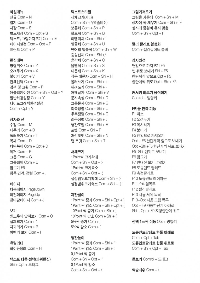 완전 초보분들을 위한 쿼크 단축키를 한 번 정리해 보았습니다...^^